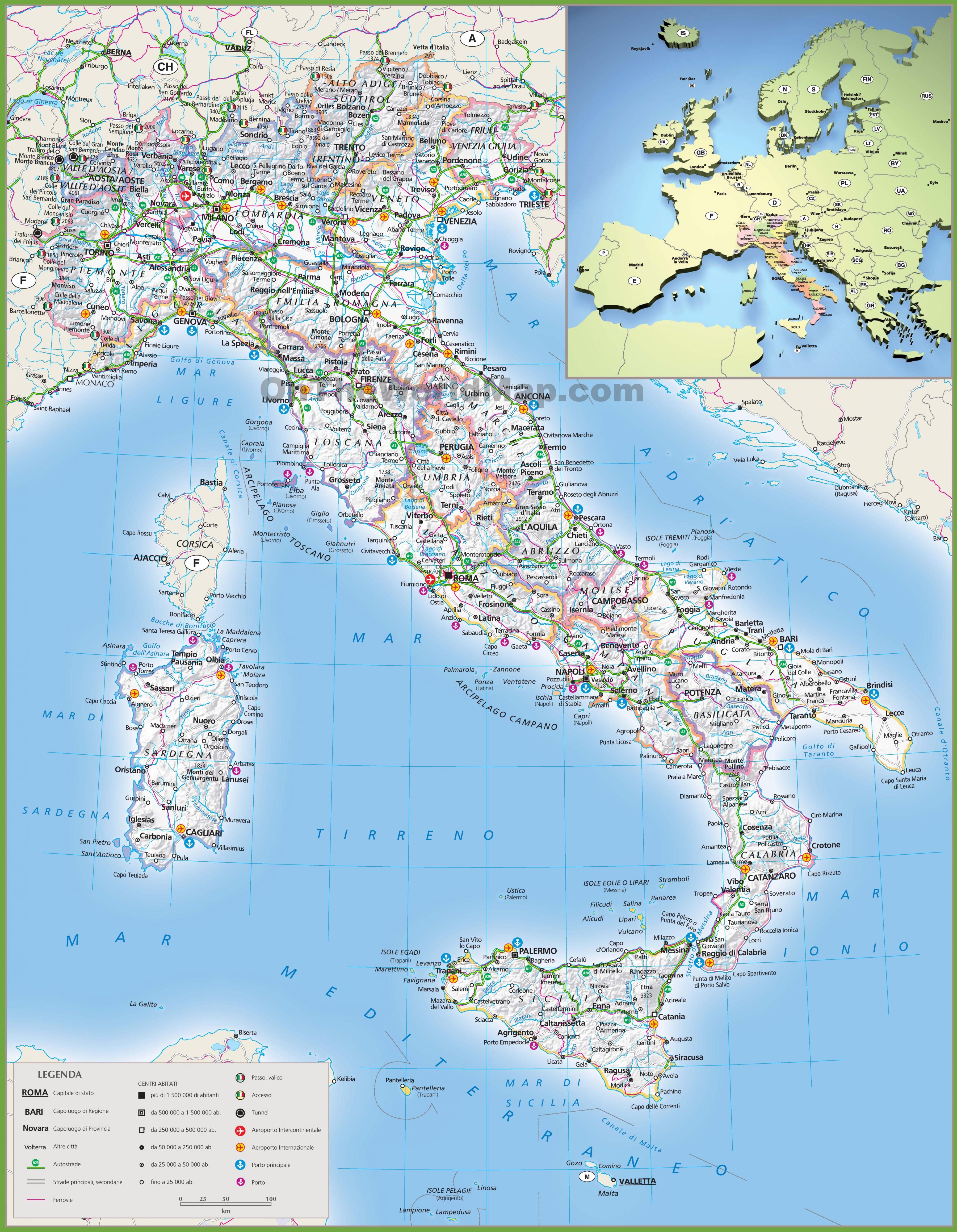 Mapa Itálie dopravy. Itálie dopravní mapa (Jižní Evropa - Evropa) tisknout. Itálie dopravní mapa (Jižní Evropa - Evropa) ke stažení.